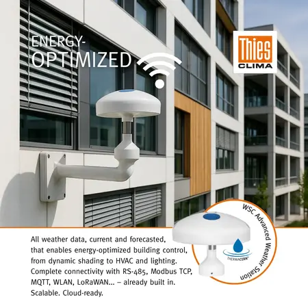 11. October 2024Modern weather control for building management system (BMS): The weather control center, CLIMA Sensor!The ideal partner for building automation, the weather control center